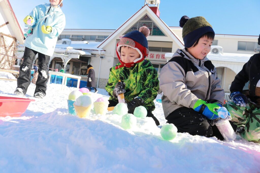 今年は1月になっても雪が少なく、例年楽しんでいる雪遊びがなかなかできない日が続いていましたが、ようやくまとまった雪が降り、子どもたちも待ちに待った雪遊びを楽しん...